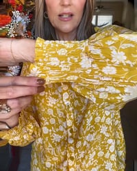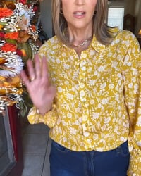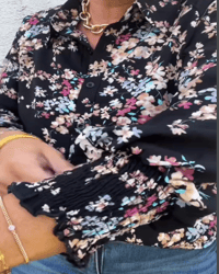 Blouse avec des Détails de Boutons Rétro et des Petits Motifs Floraux